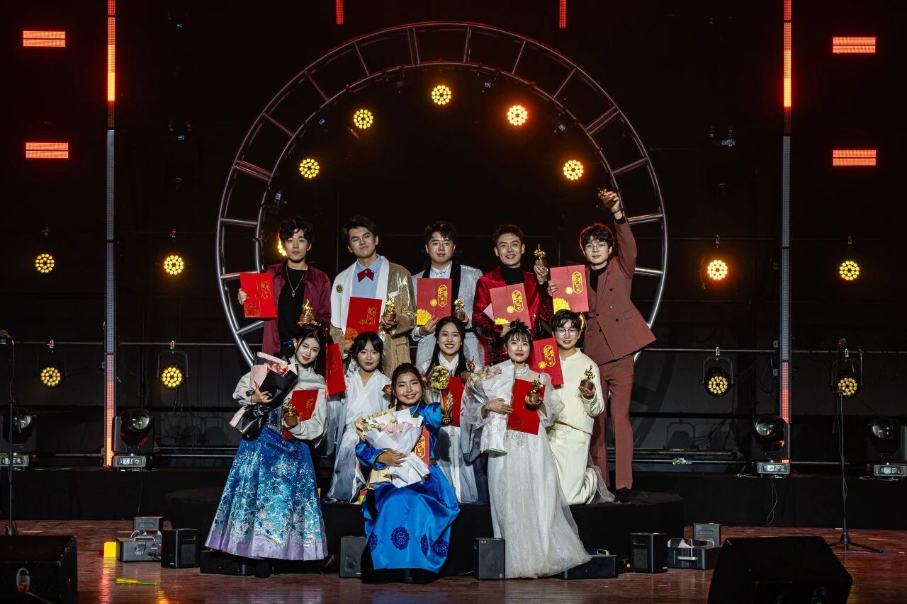 校党委副书记张洪新为“声耀辽大 逐梦芳华”辽宁大学2025年校园十佳歌手颁奖。